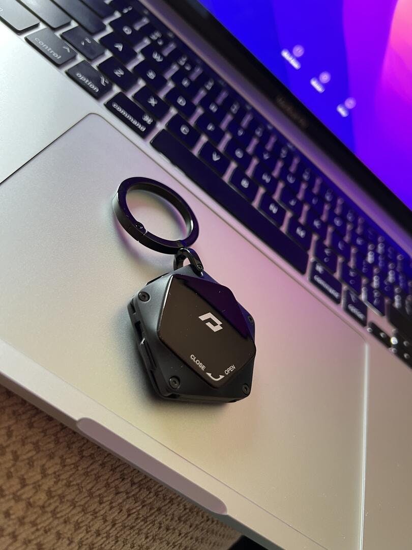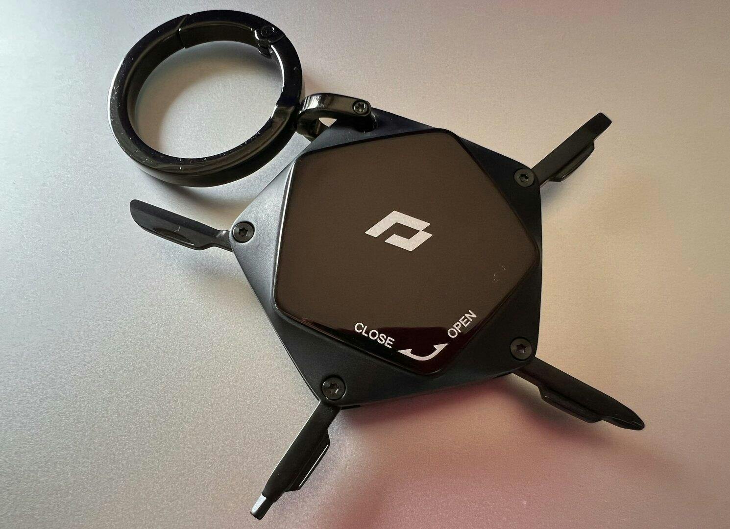 A compact EDC multi-tool with built-in AirTag compartment.